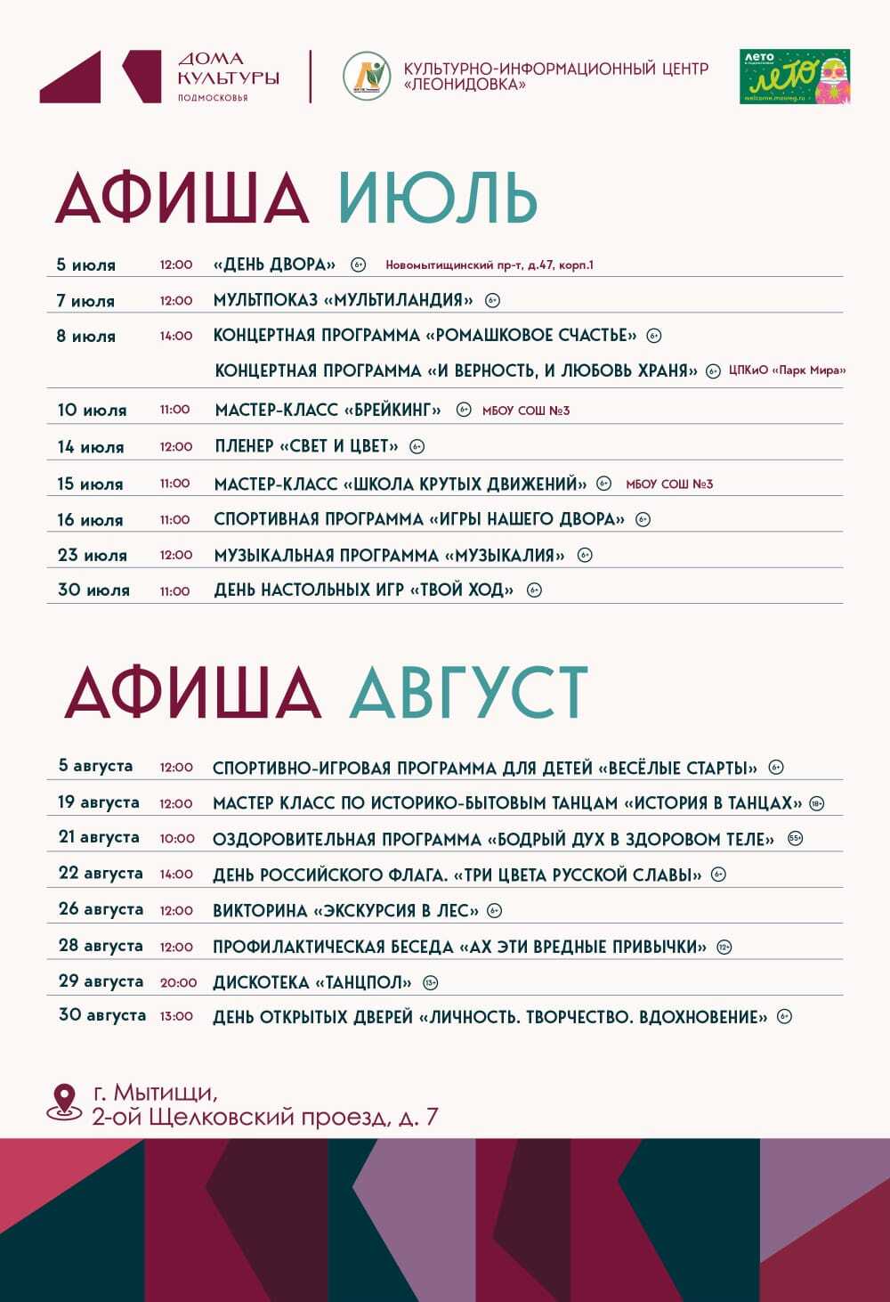 Мероприятия ИЮЛЬ-АВГУСТ